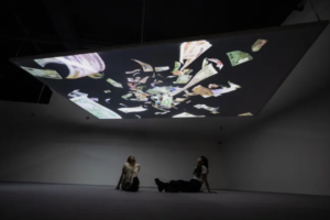 Pratchaya Phinthong, Undrift, 2024, aluminium, ripstop nylon, digital screensaver (color, silent, infinite loop). Photos: Singapore Art Museum. ‘My childhood at the printing house cultivated my sensitivity toward physical materials. You have to touch things to understand their reasons for being. First, we respect the material for what it is, and