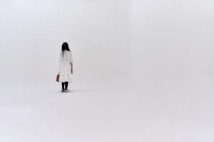Nat Setthana, ‘Photopsia’, 2024, site-specific installation, quartz, cyclorama room, light, and warning text, variable dimensions. Photo by Preecha Pattaraumpornchai. Image courtesy of 100 Tonson Foundation and the artist. “My photographic practice is about the act of revisiting and deconstructing. I use photography as an attempt to deconstruct the subject of