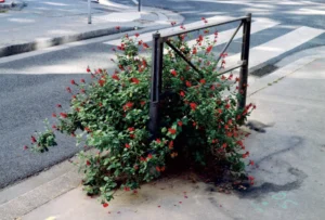 Viriya Chotpanyavisut, Flower on the road, 2023, C-print with adhesive backing, 54 × 80 1⁄4″. “The images in Viriya Chotpanyavisut’s exhibition “The Beginning of Something Else” were saturated with a range of emotions but always evoked nature’s silent scream. Subdued in tone, Chotpanyavisut’s black-and-white and color photographs feature natural elements