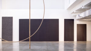 Mark Salvatus, ‘Sa kabila ng tabing lamang sa panahong ito’ (Waiting just behind the curtain of this age), 2025, exhibition view. Courtesy: Wika Nadera “Walking through Salvatus’s display is akin to lingering on a quiet note long after its initial resonance has dissipated. Here, visitors take a sonically cued meander through